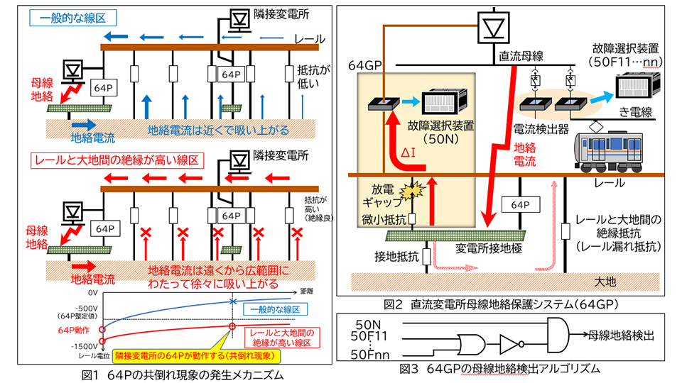 直流電鉄用変電所において直流母線地絡故障が発生した場合に、隣接する変電所の64P不要動作を防止する保護システムです。