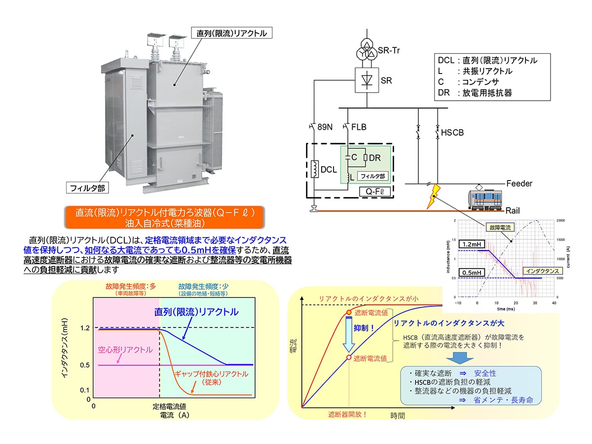 さらにQ-Fℓ型では如何なる電流領域においても過渡的な故障電流を適切に限流する直列(限流)リアクトルを備えているので、故障電流の安全・確実な遮断および直流高速度遮断器や整流器など変電所機器の負担低減に貢献します。