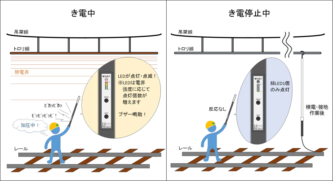 | 動作条件 | トロリ線より2m以上離れた位置で1500V加圧されているとき | |