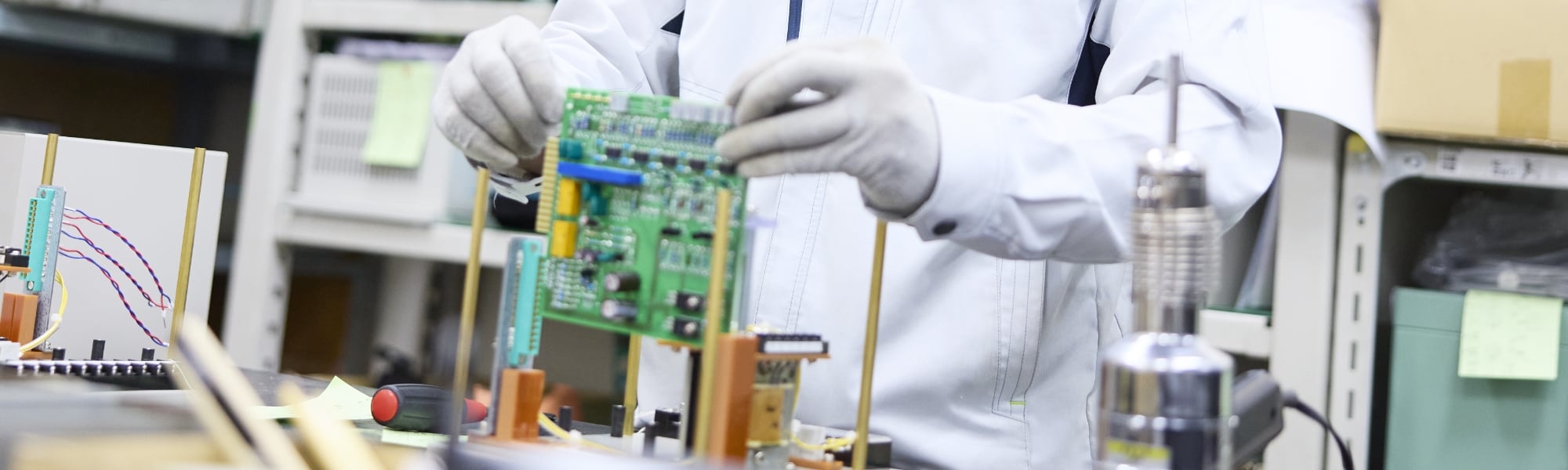 学生の頃からものづくりに興味があり、電気・電子を学び、ゼミではロボットをつくっていました。今は、製造技術課の一員としてものづくりを支え、製品が正常に動くための調整や、動作確認試験、改修作業などを担っています。検査では、出荷成績書のうえでは合格ラインだとしても、そこで満足することなく、最良の数値がピタリと出るまで調整することを心掛けています。もし部品に一つでも問題があれば、不具合が起こります。その原因がどこにあるのかを特定することは簡単ではありませんが、先輩や設計担当者に教えを請いながら自分で原因を見つけ出す努力をするなかで、一歩ずつ成長を実感する日々です。